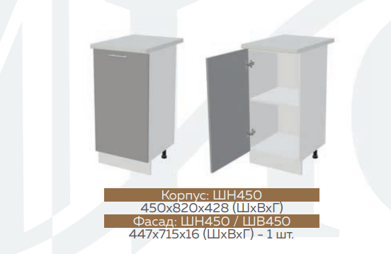 Высота нижних шкафов: 820 мм