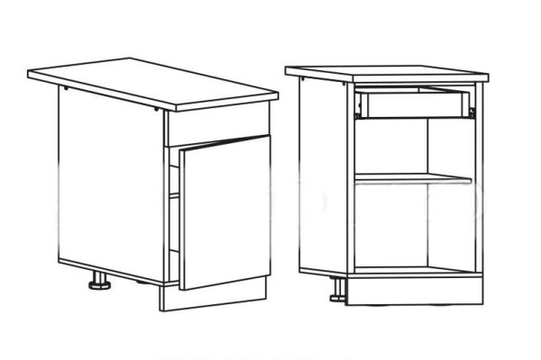 Глубина нижних шкафов без учета столешницы: 444 мм, с учетом столешницы 600 мм